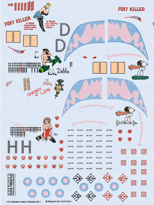 Kits-World - 1/32 Desert Storm Tornados GR.1B- Foxy Killer FK, ZA465 16 Squadron Tabuk 1991. GR1B- Debbie Snoopy Airways DD, ZD790 31 Squadron Bahrain 1991. GR1- Cherry Lips CL, ZD850 2 Squadron Tabuk 1991. GR1- Helen-Snoopy Airways HH, ZD892 617 Squadron Maharraq 1991.