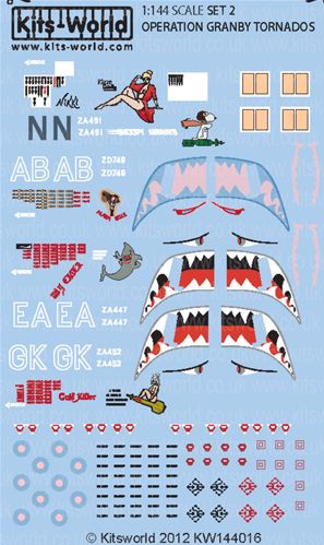 Kits-World - 1/144 Panavia Tornado GR.4 Desert Storm 1991 (4) ZA491/N Nikki/Nora Batty Snoopy Airways 20 Squadron Tabuk, GR.4 ZD746/AB Alarm Belle 9 Sqn Tabuk, ZA452/GK Gulf Killer 20 Sqn Tabuk, ZA447/EA MiG Eater 16 Sqn Tabuk. All in Desert Oink overall.