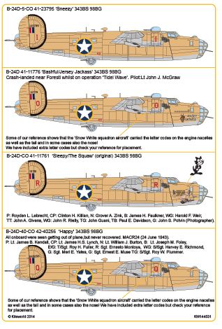 Kits-World - 1/144 Scale Consolidated B-24D 343 Bs 98 Bg Co 41-23795 'Sneezy' Consolidated B-24D 343 Bs 98 Bg Co 41-11776 'Bashful/Jersey Jackass' Consolidated B-24D 343 Bs 98 Bg Co 42-40256 'Happy' Consolidated B-24D 343 Bs 98 Bg Co 41-11761 'Sleepy'/'The Squaw'