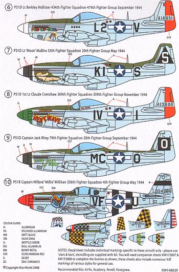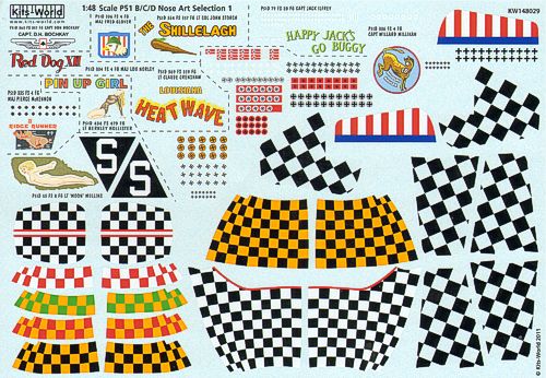 Kits-World - 1/48 North-American P-51D Mustang Nose Art Selection -Red Dog XII, Shillelagh, Happy Jacks Go Buggy, Heat Wave, Ridge Runner, Pin-up Girl, Missouri Mauler, Louisiana Heatwave, Fw Glover, Lt 'Moon' Mullins, Capart D.H.Brochkay