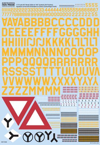 Kits-World - 1/72 Boeing B-17F/B-17G Flying Fortress Aircraft ID/Squadron ID Lettering Yellow/Numbers Yellow/Bomb Group Symbols, Mission Markings