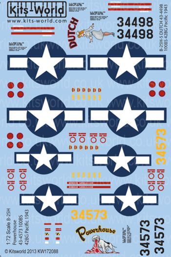 Kits-World - 1/72 Scale North-American Mitchell B-25H-5 43-4573 'Power House' 100BS 42BG Pacific 1943. Mitchell B-25H-5 43-4498 'Dutch' 100BS 42BG Pacific 1943