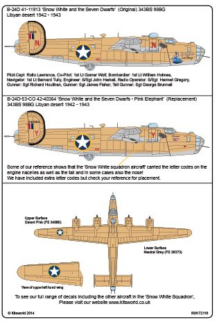 Kits-World - 1/72 Scale Consolidated B-24D 343 Bs 98 Bg Co 41-11913/42-40364 'Snow White and the Seven Dwarfs' versions I & II