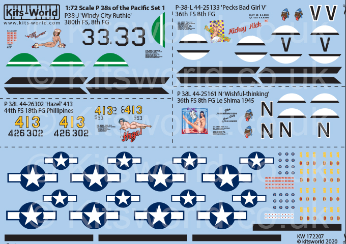 Kits-World - 1/72 Lockheed P-38 Lightning s of the Pacific (Late War) Set One