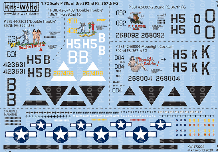 Kits-World - 1/72 Lockheed P-38J Lightning 44-23511, 42-67408 'Double Trouble 367th Fg 392nd FS.