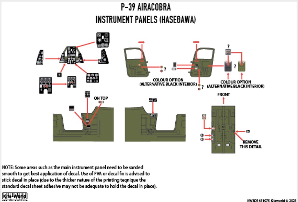 Kits-World - 1/48 Bell P-39Q/N Airacobra Full Colour 3D Interior Cockpit Set (for Hasegawa HAJT093 kits).