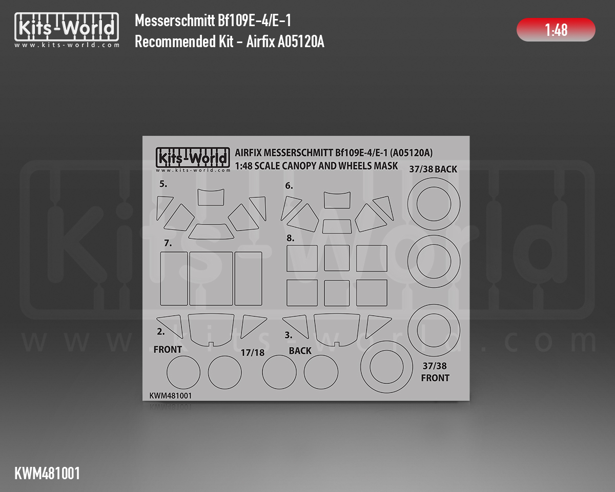 Kits-World - 1/48 Messerschmitt Bf-109E-1/Bf-109E-3/Bf-109E-4 Canopy/Wheels Mask