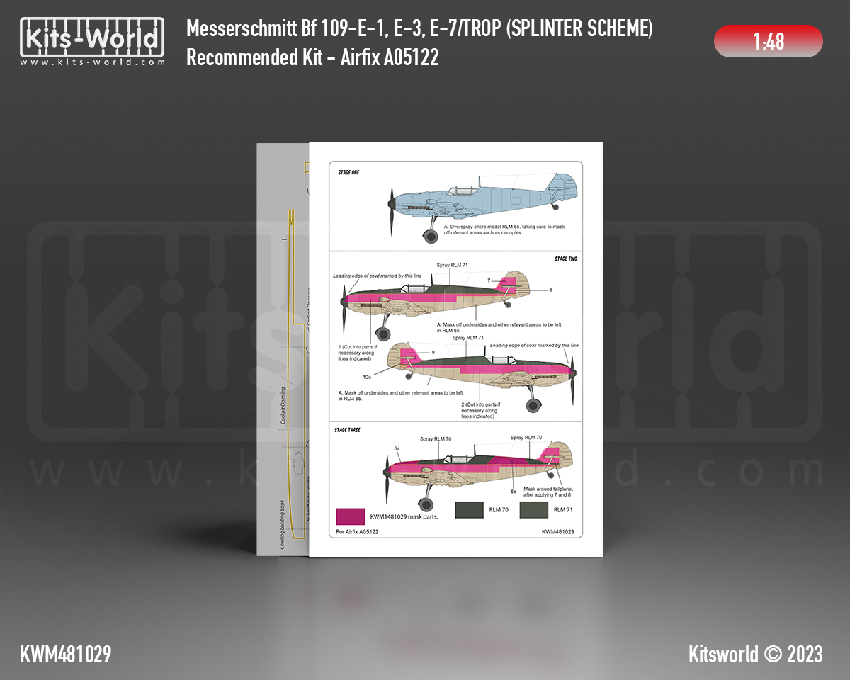 Kits-World - 1/48 Messerschmitt Bf-109E-1, Bf-109E-3, Bf-109E-7 Rlm 65, 70, 71 or 02 Splinter Scheme, Variation 2 (for Airfix AX05122 kits)