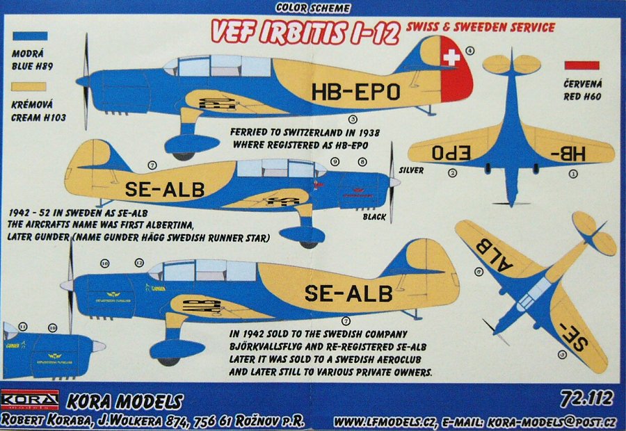 Kora Model - 1/72 VEF Irbitis I-12 Swiss & Swedish service