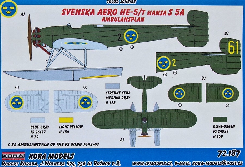 KORA MODEL - 1/72 He-5/T Hansa S5A Swedish Ambulance Floatplane