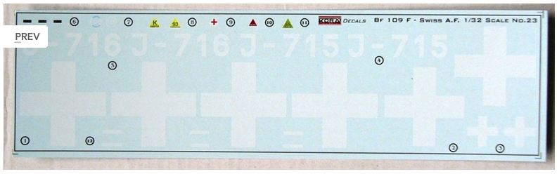 Kora Model - 1/32 Decals Bf 109 F-4/Z (Swiss Air Force)