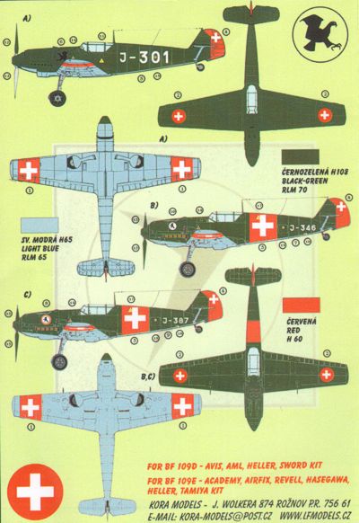 Kora Model - 1/72 Decals Bf 109 D-1 David Part III (Swiss AF)