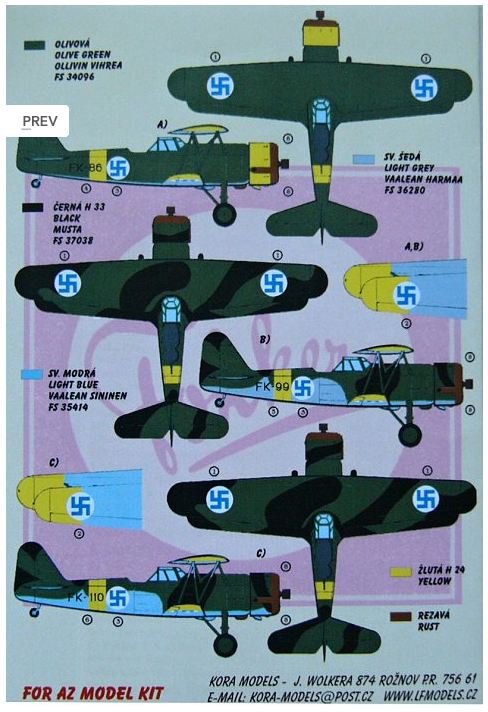 Kora Model - 1/72 Decals Fokker C.X wheels (Finnish Service)