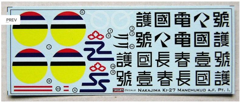 Kora Model - 1/72 Decals Ki-27b NATE (Manchukuo AF) Part I.