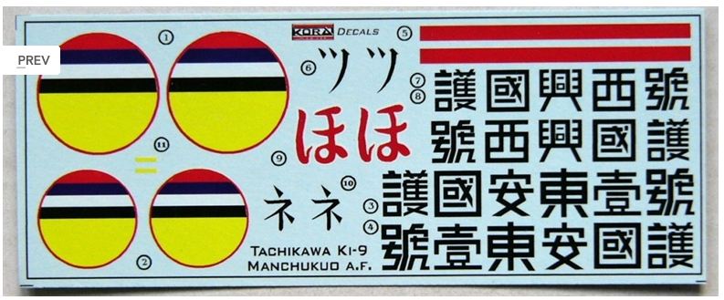 Kora Model - 1/72 Decals Ki-9 SPRUCE (Manchukuo Air Force)
