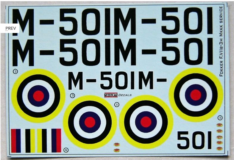 Kora Model - 1/72 Decals Fokker F VII B-3M TRIMOTOR