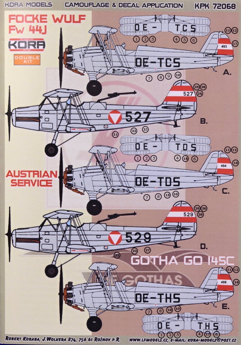 Kora Model - 1/72 Gotha Go-145A & Focke-Wulf Fw-44J Austrian Service (2-in-1)