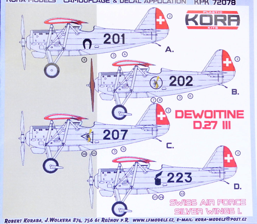 KORA MODEL - 1/72 Dewoitine D.27 III. Swiss AF Silver Wings I
