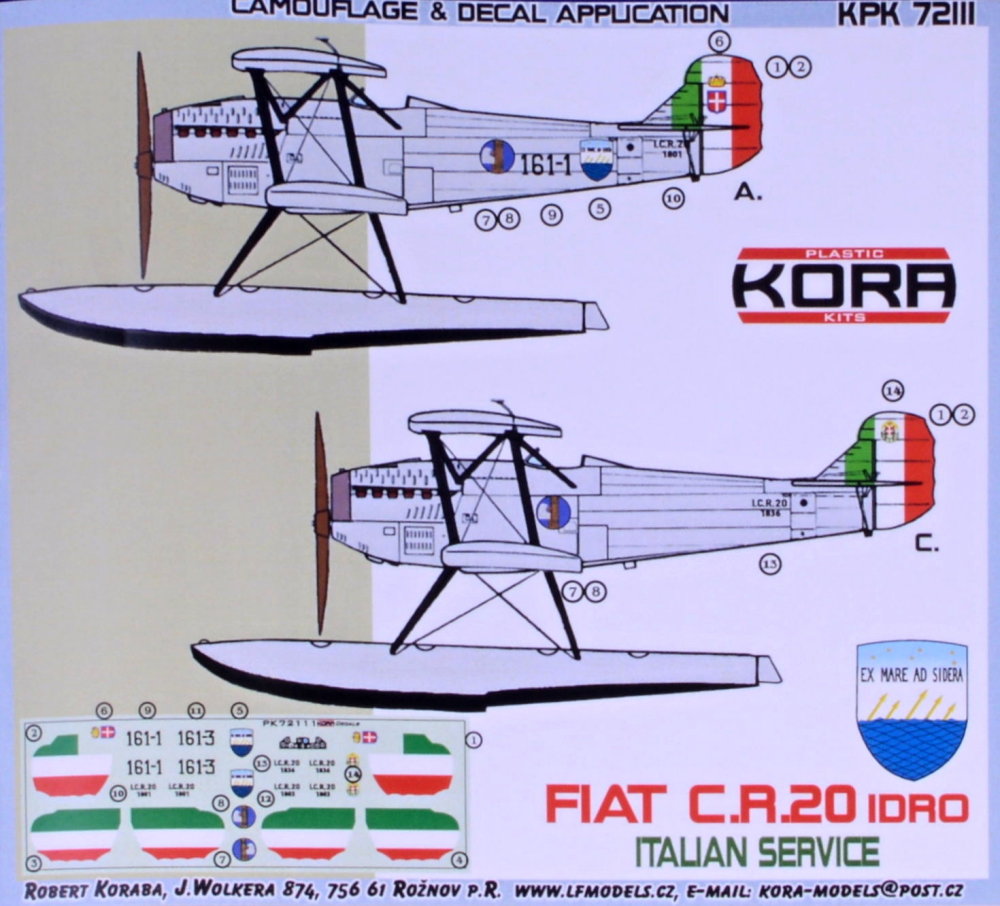 KORA MODEL - 1/72 FIAT C.R.20 Idro Italian Service (2x camouflages)