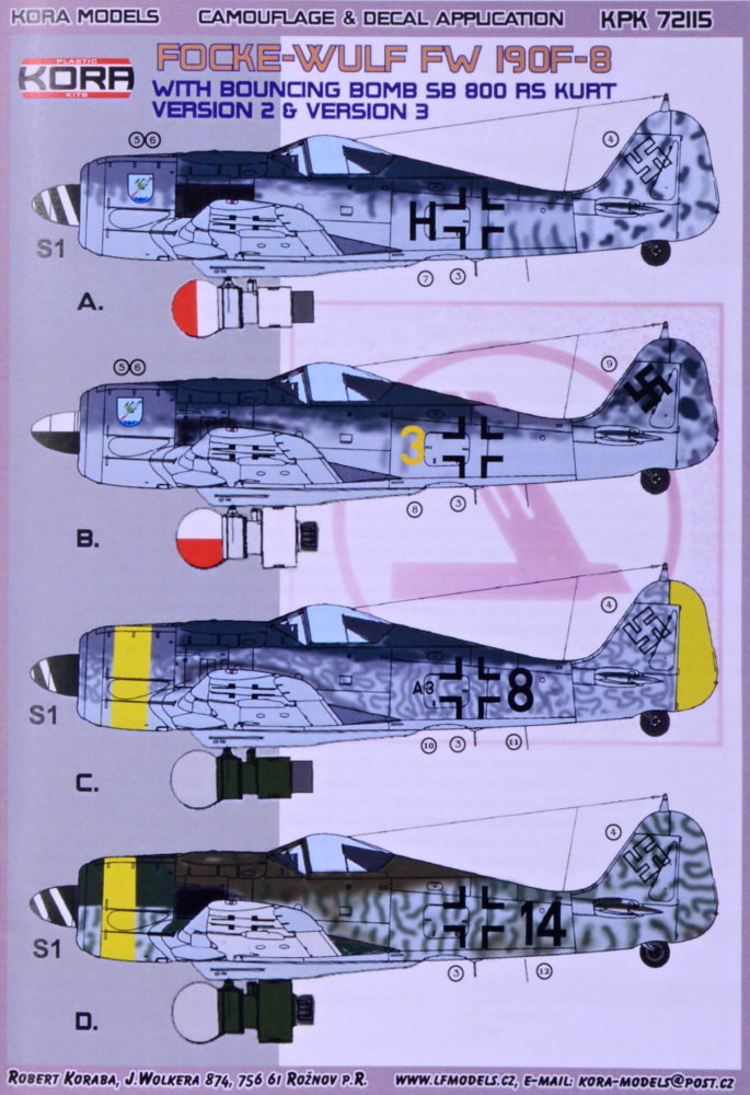 KORA MODEL - 1/72 Fw 190F-8 with bouncing bomb SB 800 RS KURT