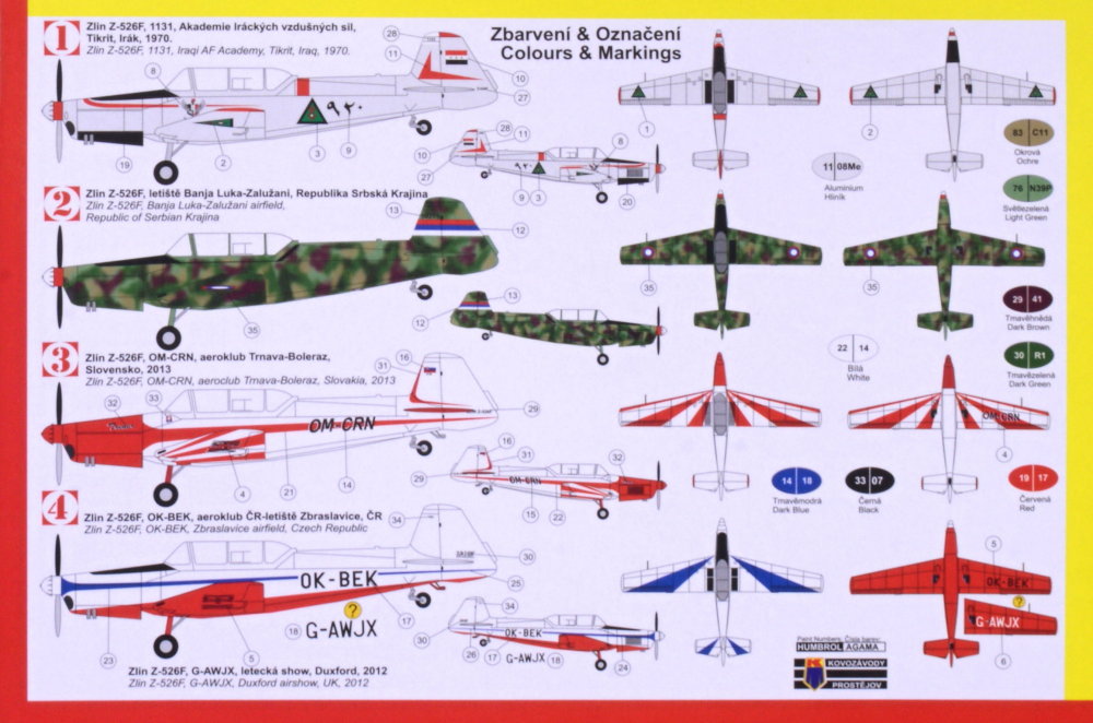 KOVOZAVODY PROSTEJOV - 1/72 Zlin Z-526F Trener (4x camouflages)