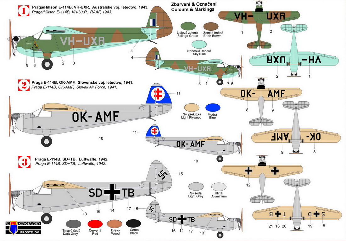 KOVOZAVODY PROSTEJOV - 1/72 Praga E-114B Air Baby (3x camouflages)