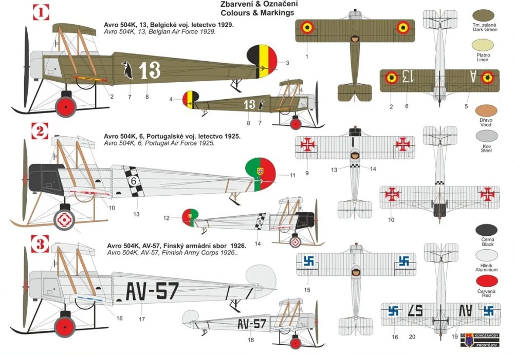 KOVOZAVODY PROSTEJOV - 1/72 Avro 504K Over Europe 3x camouflages