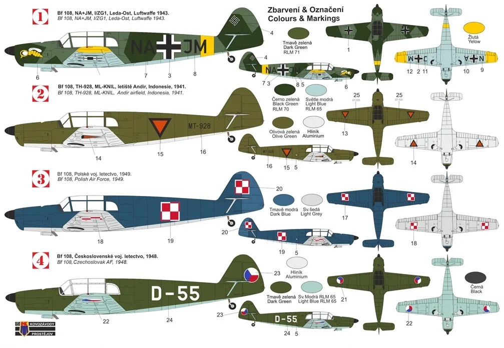 KOVOZAVODY PROSTEJOV - 1/72 Messerschmitt Bf 108 Taifun 4x camouflages