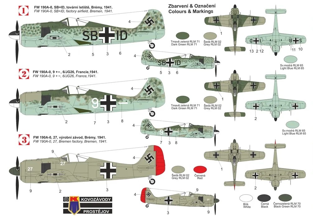 KOVOZAVODY PROSTEJOV - 1/72 Focke-Wulf Fw 190A-0 3x camouflages
