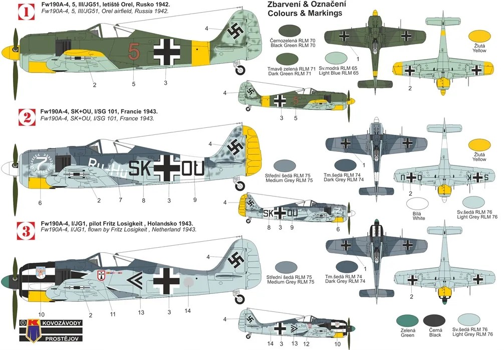 KOVOZAVODY PROSTEJOV - 1/72 Focke-Wulf Fw 190A-4 3x camouflages