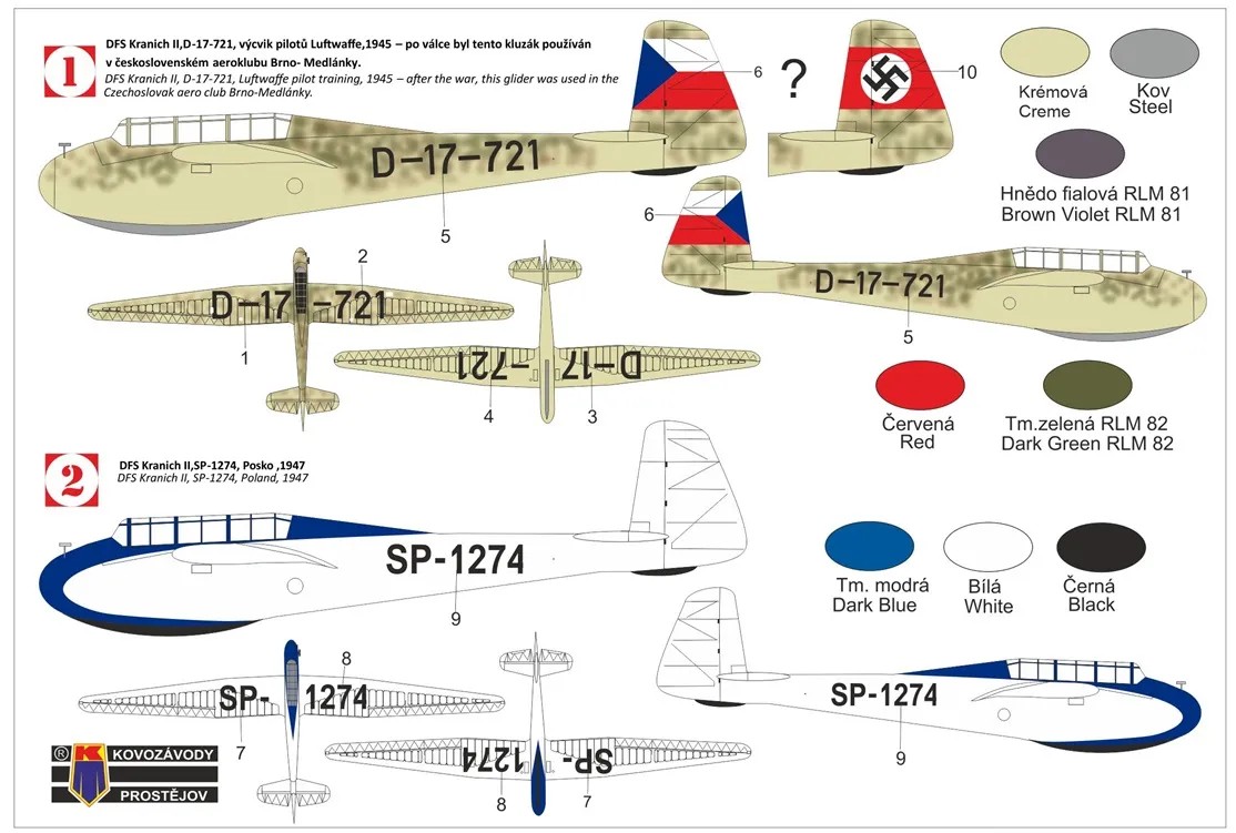 KOVOZAVODY PROSTEJOV - 1/72 DFS Kranich II. 2x camouflages