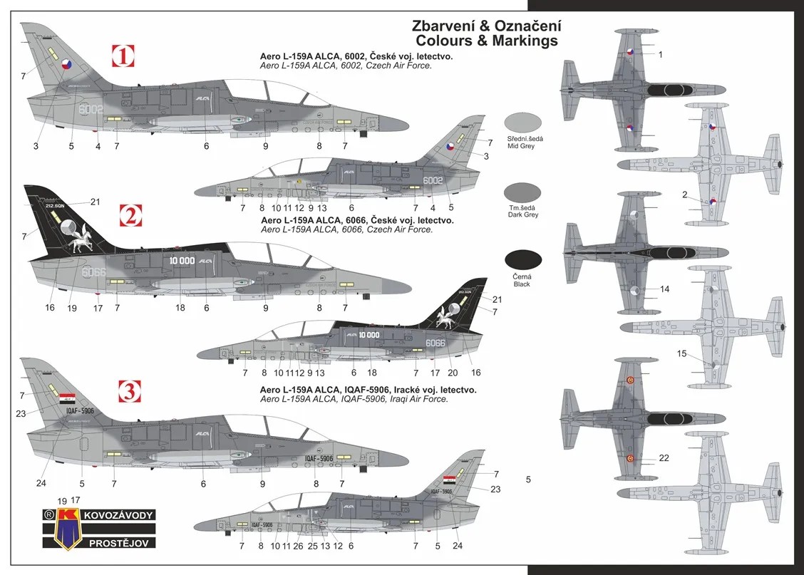 KOVOZAVODY PROSTEJOV - 1/72 Aero L-159A Alca 3x camouflages HI-TECH