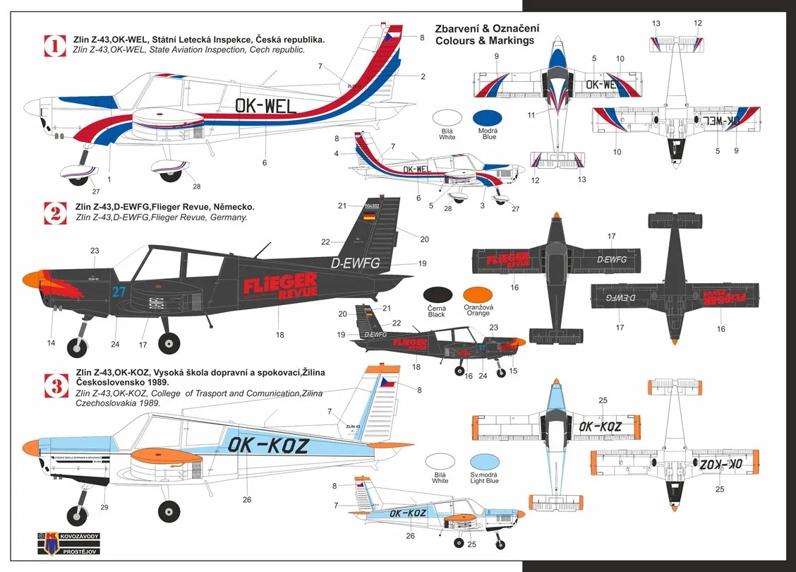 KOVOZAVODY PROSTEJOV - 1/72 Zlin Z-43 3x camouflages HI-TECH