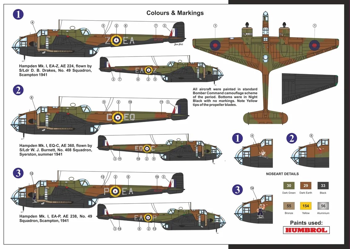 KOVOZAVODY PROSTEJOV - 1/72 Handley Page Hampden Mk.I 3x camouflages HI-TECH