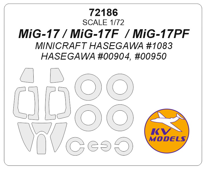 KV Decals - 1/72 Mikoyan MiG-17 + wheels masks (for Hasegawa and Minicraft kits)