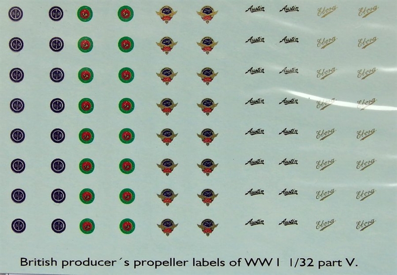 LF Model - 1/32 British WWI propeller manufacturer logo's part V. 5 decal options of propeller producers - Blackburn Aeroplane&Motor, Armstrong-Whitworth Co., The Airscrew Co., Austin Motor Co. Ltd. , Ebora propeller Co.Ltd.