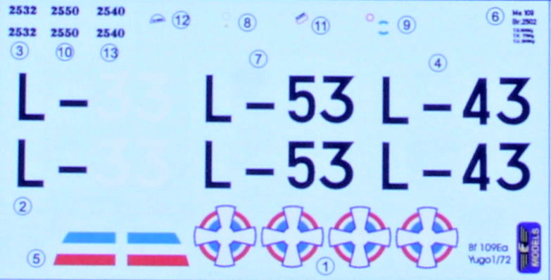 1/72 Decals Bf 109E3a Yugoslavia II.