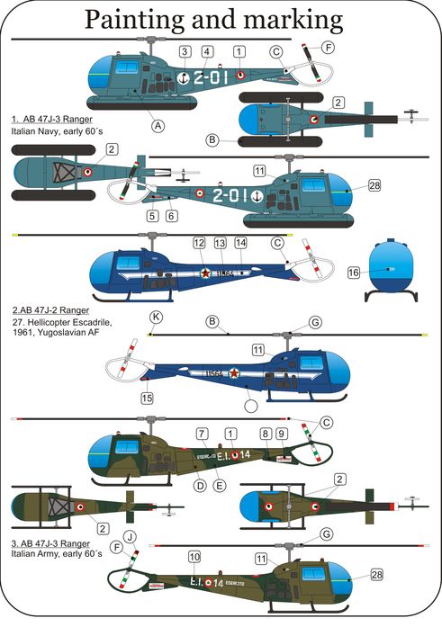 1/72 Ab 47J Ranger Italian Navy, Army, Yugo., Denmark, Norway AF