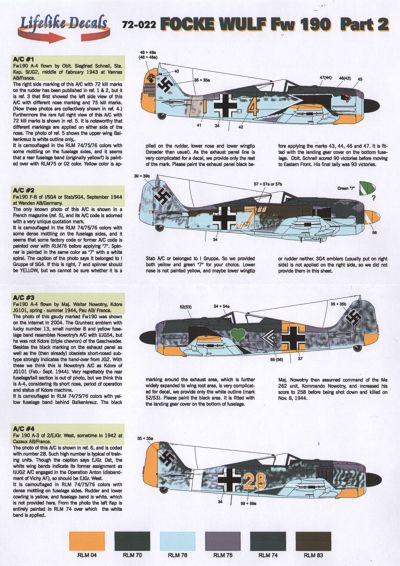 Lifelike - 1/72 Focke-Wulf Fw-190 Part 2 (4) Fw-190A-3 Yellow 28 2/EJGr.West, Fw-190A-4 Yellow 4+I 9/JG 2 Oblt Schnell, Black