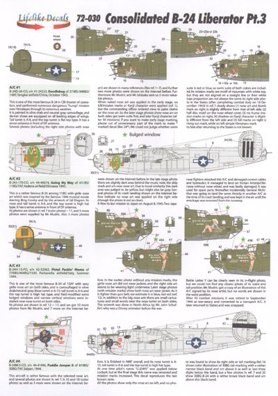 Lifelike - 1/72 Consolidated B-24 Liberator A/C #1--B-24D-26-CO, "Doodlebug", "#432" of 14AF/308BG/373BS A/C #2--B-24J-170-CO, "Going My Way" of 7AF/11BG/431BS A/C #3--B-24H-15-FO, "Pistol Packing Mama", "Y" of 15AF/464BG/776BS A/C #4--B-24M-5-CO, "Puddle Jumper II" of 7AF/30BG/819BS