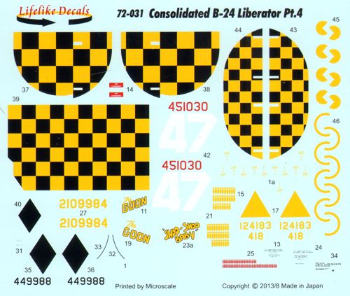 Lifelike - 1/72 Consolidated B-24 Liberator A/C #1--B-24D-20-CO, "The Goon" of 14AF/308BG/374BS A/C #2--B-24J-110-CO, "Shoo Shoo Baby", "#984" of 5AF/22BG/408BS A/C #3--B-24L-15-FO, "Mickey Finn" of 15AF/459BG/758BS A/C #4--B-24M-15-FO, "Sleepy-Time Gal", "#47" of 10AF/7BG/493BS
