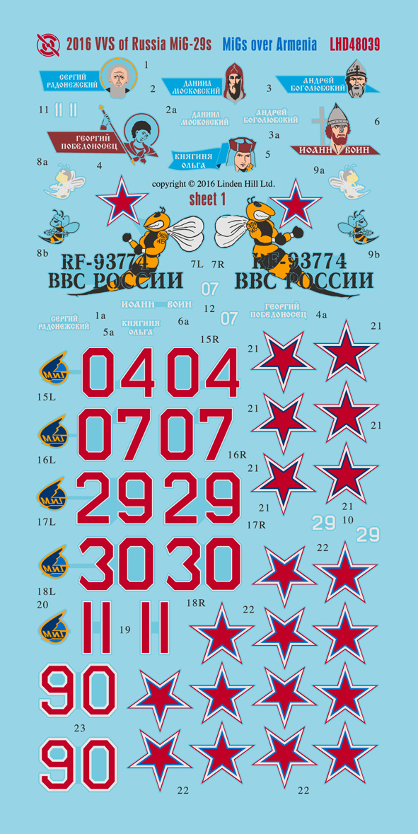 Linden Hill - 1/48 'Russian MiGs over Armenia - 2016 VVS of Russia MiG-29s' 5x MiG-29 9-13, 1x MiG-29UB