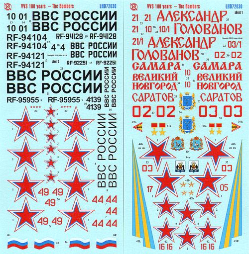Linden Hill - 1/72 Vvs 100 Years The Bombers (2 x Tupolev Tu-22m3, 3 x Tupolev Tu-95MS, 3 x Tupolev Tu-160, 3 x Sukhoi Su-34 in new Soviet markings, which flew in the 2012 birthday flypast)