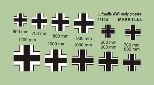 Mark 1 Guide - 1/144 Luftwaffe Crosses (Balkenkreuz) early type (size 600, 700, 800, 900, 1000, 1200 mm), 2 sets