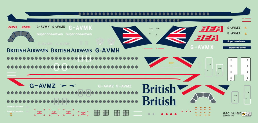 Mark 1 - 1/144 Bac 1-11-500 'In British Skies' designed to match Mark I MKM144112, 144113 & 144114