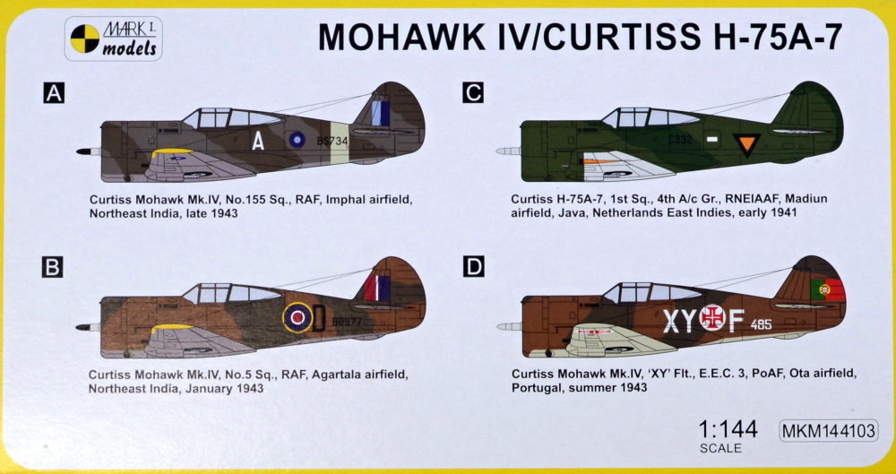 Mark I Models - 1/144 Mohawk IV/H-75A-7 'Overseas Service' (2in1 = 2 kits in 1 box) (RAF, NEIAAF, Portuguese AF)