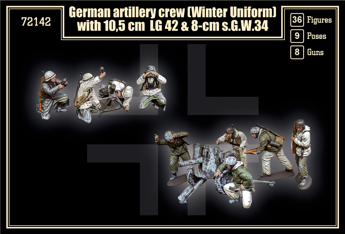 Mars - 1/72 German Artillery Crew in winter uniform. Includes 10.5cm LG42/43 and 8cm s.G.W.34 for WWII