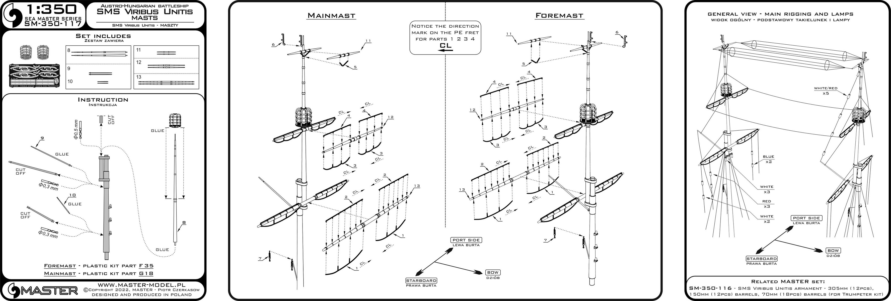Master (PL) - 1/350 Sms Viribus Unitis masts, yards and other turned and resin parts set (for Trumpeter kits)