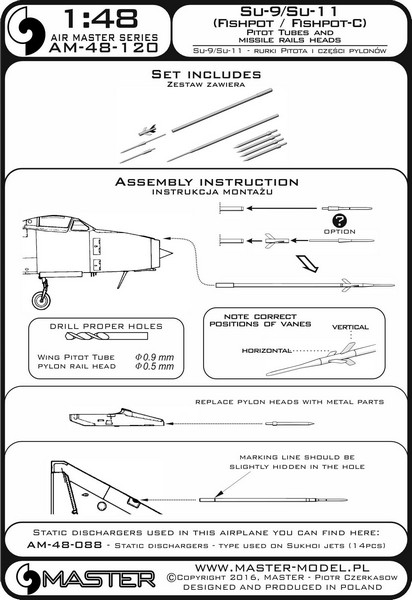 Master (PL) - 1/48 Sukhoi Su-9 / Sukhoi Su-11 (Fishpot / Fishpot C) - Pitot Tubes and missile rails heads