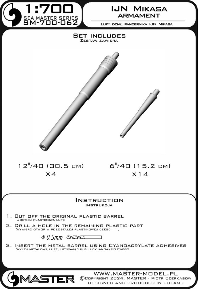 MASTER (PL) - 1/700 IJN Mikasa armament set 18 pcs.